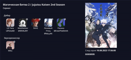 По технической части: мы все силы направили на закрытый сайт, где ведем свои проекты. Это очень удобный инструмент ведения релизов, где автоматически загружаются серии, есть куча инструментов для разбора субтитров и собираются все файлы которые пишут наши даберы, а так же ведется автоматическая статистика. Насколько мне известно, подобное приложение есть только у нашей команды. Так что мы продолжаем развиваться и вносить новое слово в любительскую озвучку.